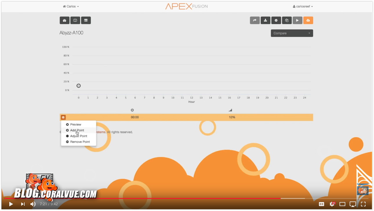 In this video, we are going to create a 4-point schedule. Since we are using the Abyzz-A100 as a return pump, we are going to have one constant intensity during the day and then slow the pump down a little bit at night.