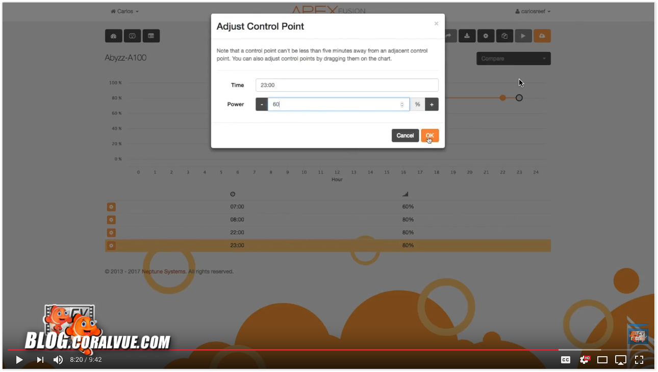 If you are having a hard time reaching that 7 o’clock mark, you can always click on the orange gear and then select “Adjust Point”. Select 07:00 and then enter power of 60.