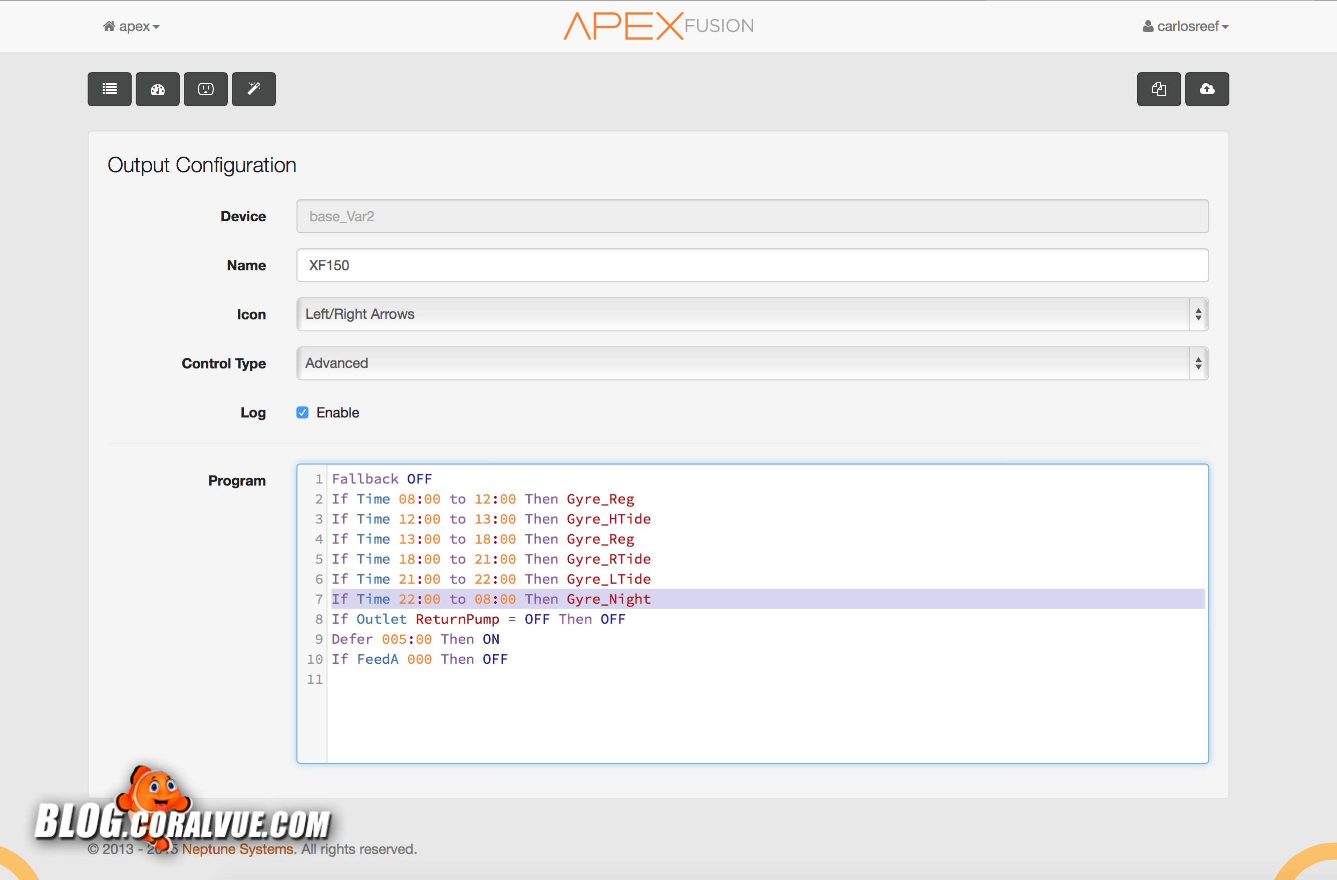 This is the Apex Fusion cloud based control of the Apex controller.
